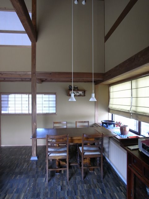 赤湯温泉 松島館-その16 2008年8月20日 最終更新日時 : 2008年8月20日 リビングは吹抜になっています。 格子戸を引くと台所になります。 床は、北海道パーケット工業のエターナル ナラ ブラックの艶消しです。 小屋裏部屋の中2階が寝室です。